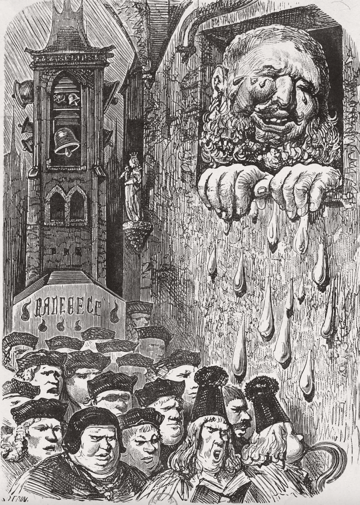 Gargantua est plongé dans une confusion émotionnelle provoquée par la mort de sa femme Badebec et la naissance de son fils Pantagruel.