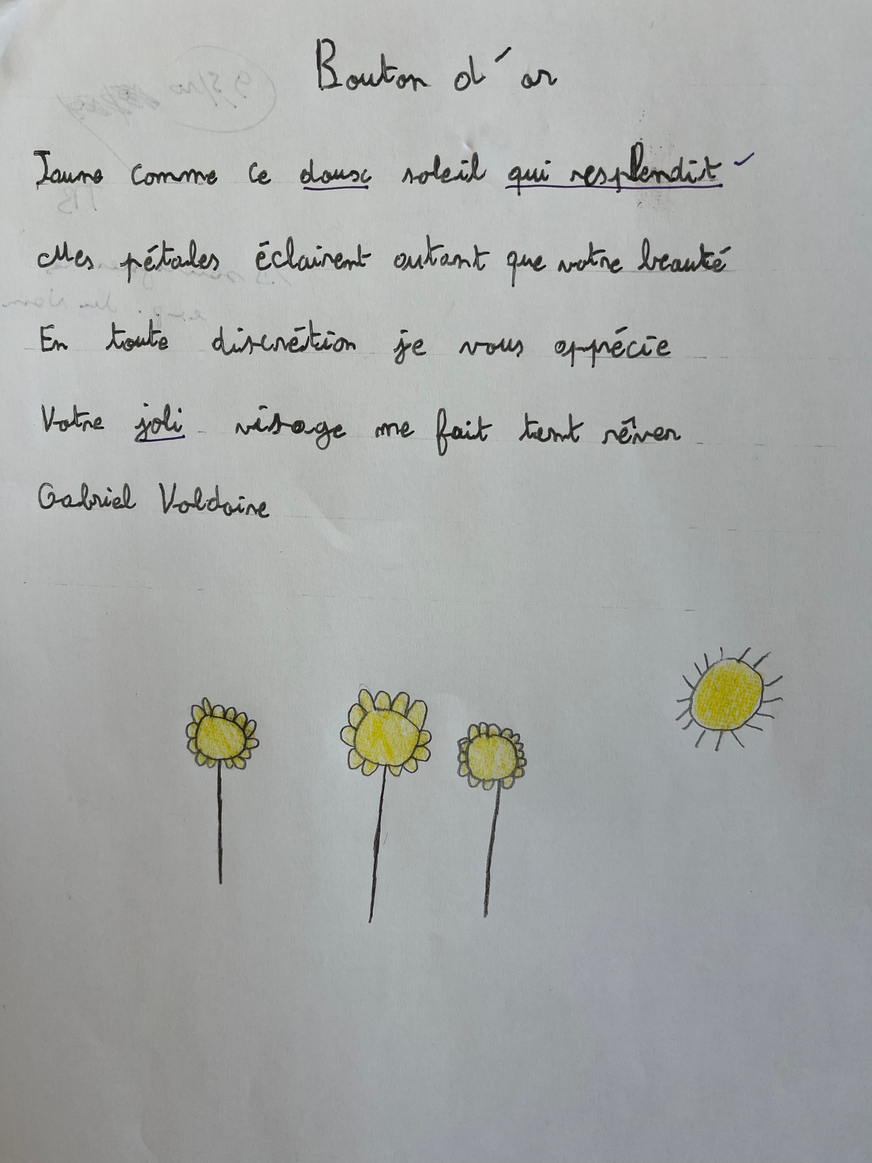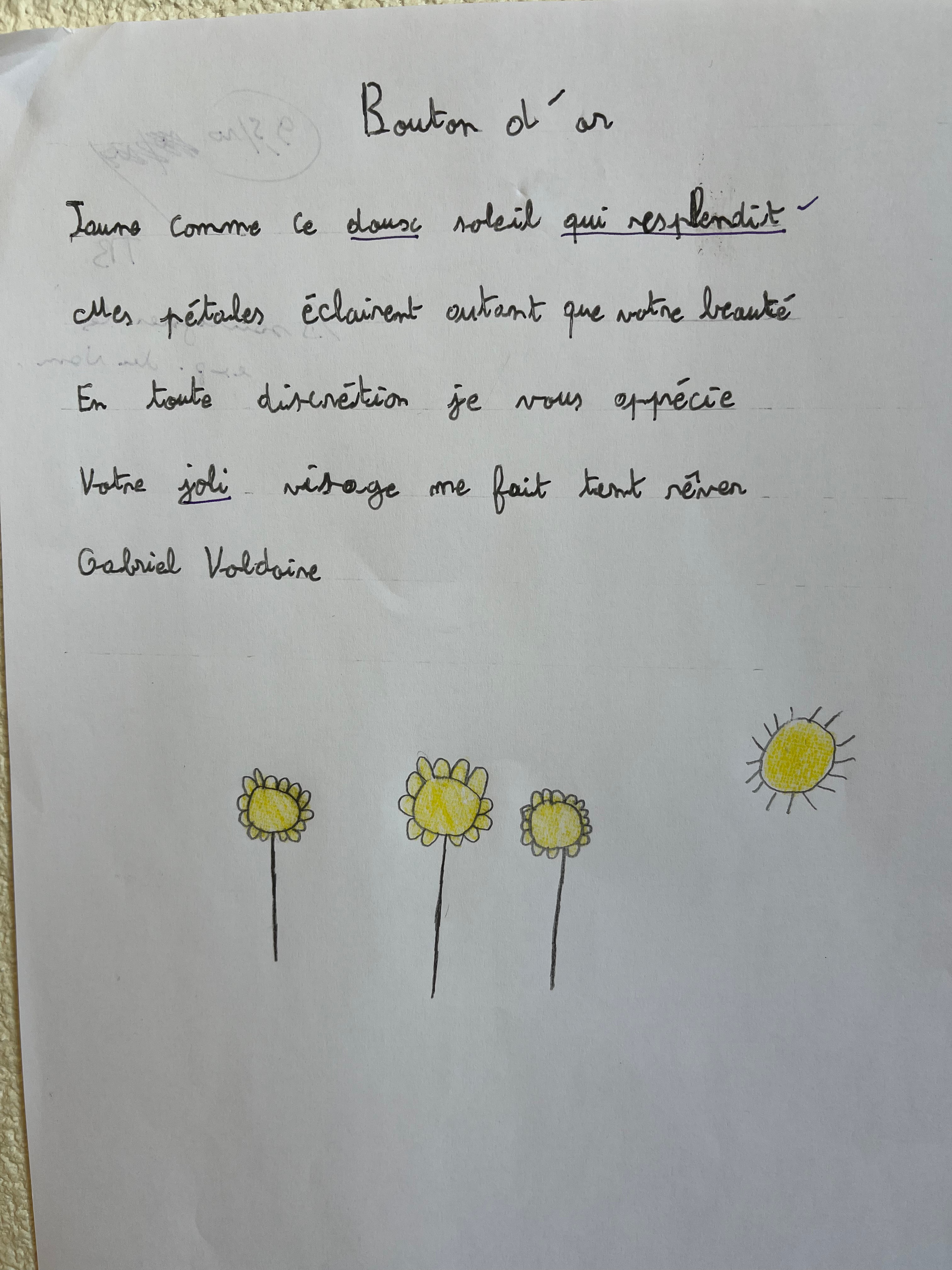 Remarque : J’ai choisi de supprimer la contrainte de l’alexandrin, voyant qu’elle freinait trop les élèves dans leur processus d’écriture