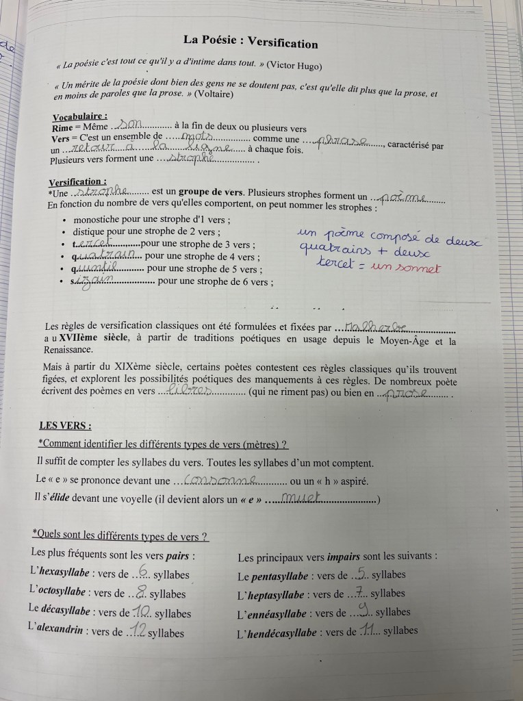 - Ce poème est donc formé de deux ……………………………………… suivis de deux ……………………………… .