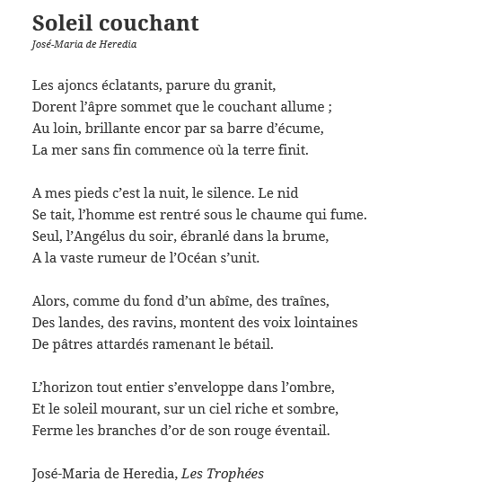 3) deux quatrains suivis de deux tercets = ce poème est donc un sonnet