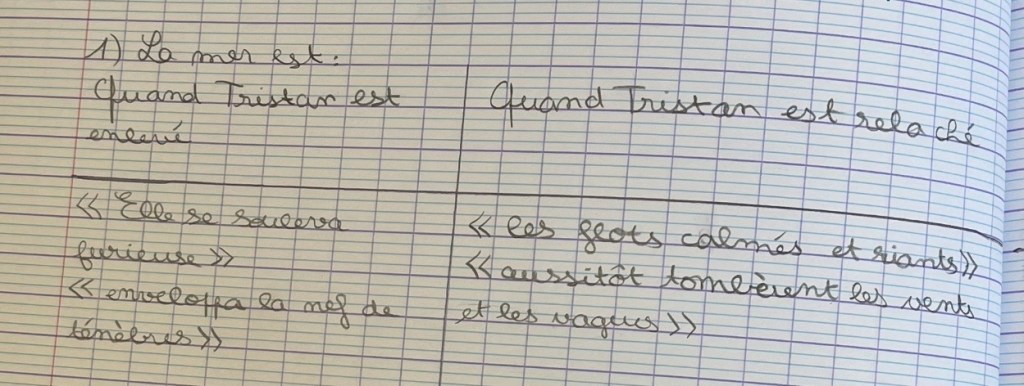 Activité : Comment la mer se comporte-t-elle durant la captivité de Tristan puis à sa libération ? Relevez des éléments précis du texte et classez-les dans un tableau.